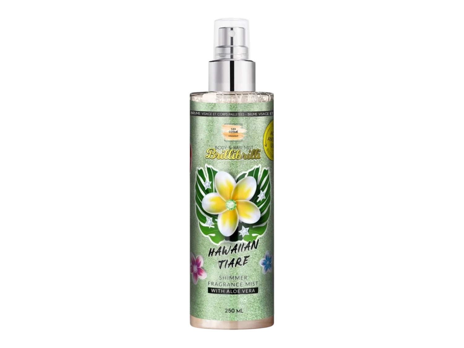 Plongez dans une évasion sensorielle avec la Brume Scintillante Corps et Cheveux Hawaï Tiaré. Alliant éclat et parfum envoûtant, cette brume légère sublime votre peau et vos cheveux d’un voile scintillant délicat, tout en les enveloppant d’un parfum exotique et solaire.