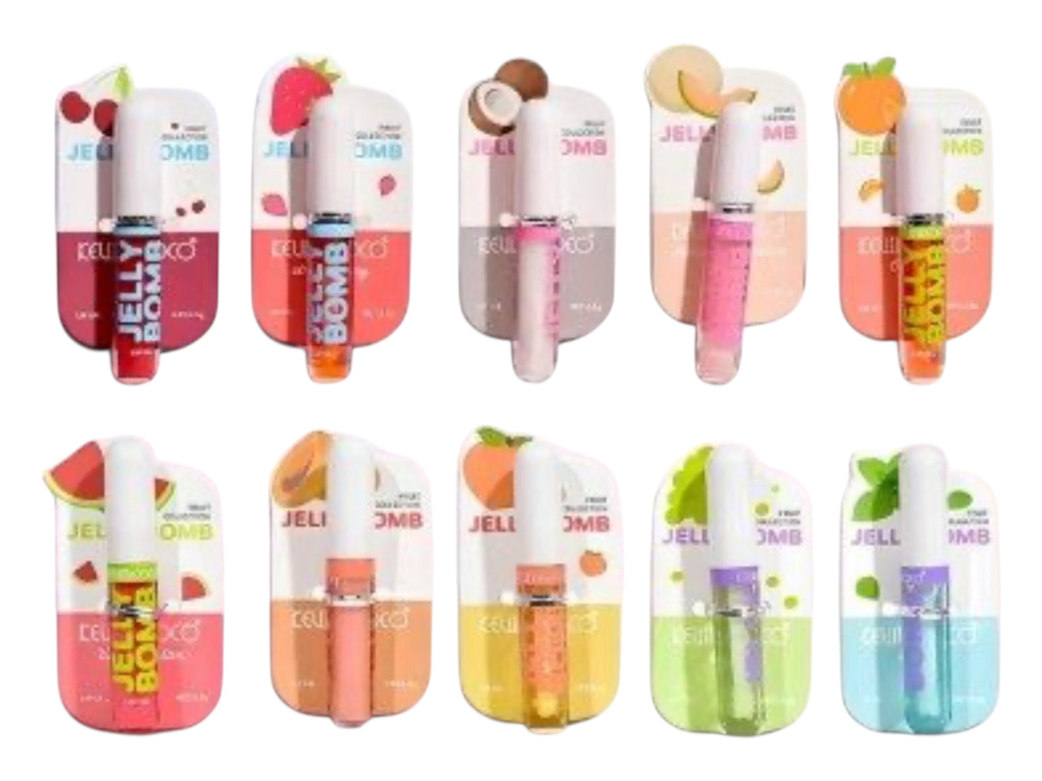 Gloss jelly et Fruité : Cerise, Fraise, Coco, Melon, Pastèque, Papaye, Pêche et raisin