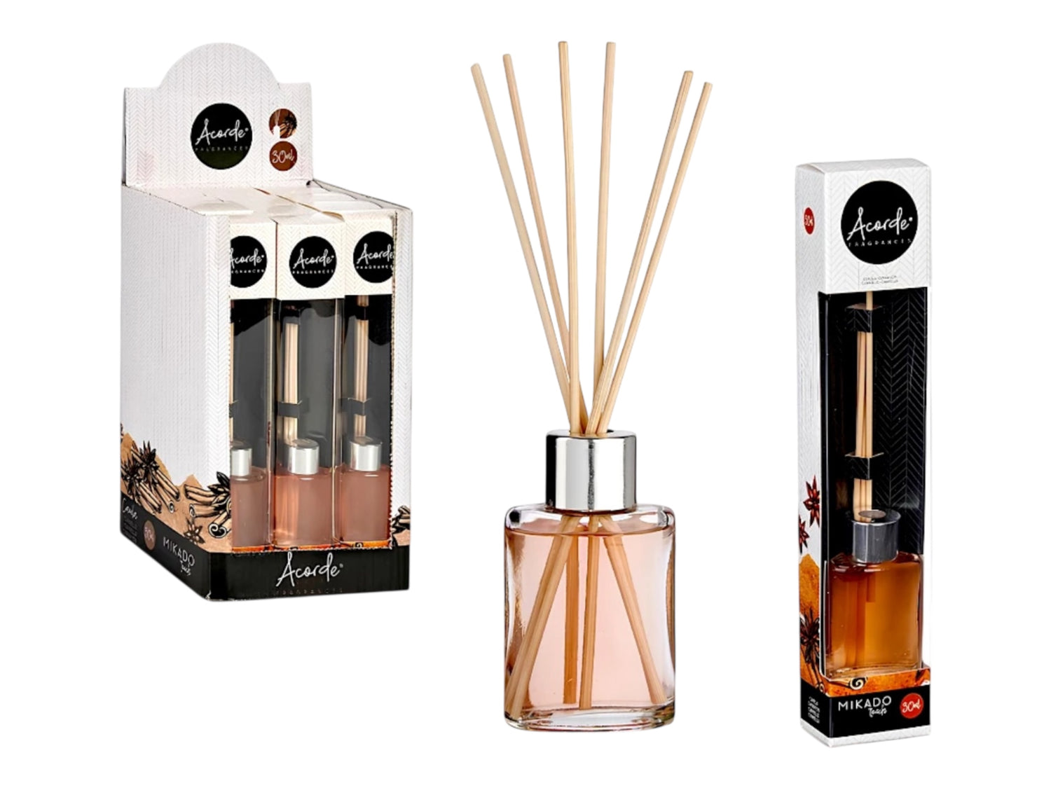 Offrez une ambiance chaleureuse et épicée avec ce mikado parfumé à la cannelle. Ce parfum enveloppant crée une atmosphère réconfortante, idéale pour les saisons froides ou les intérieurs cosy. Chaque diffuseur libère son arôme naturellement grâce à ses tiges en rotin.
