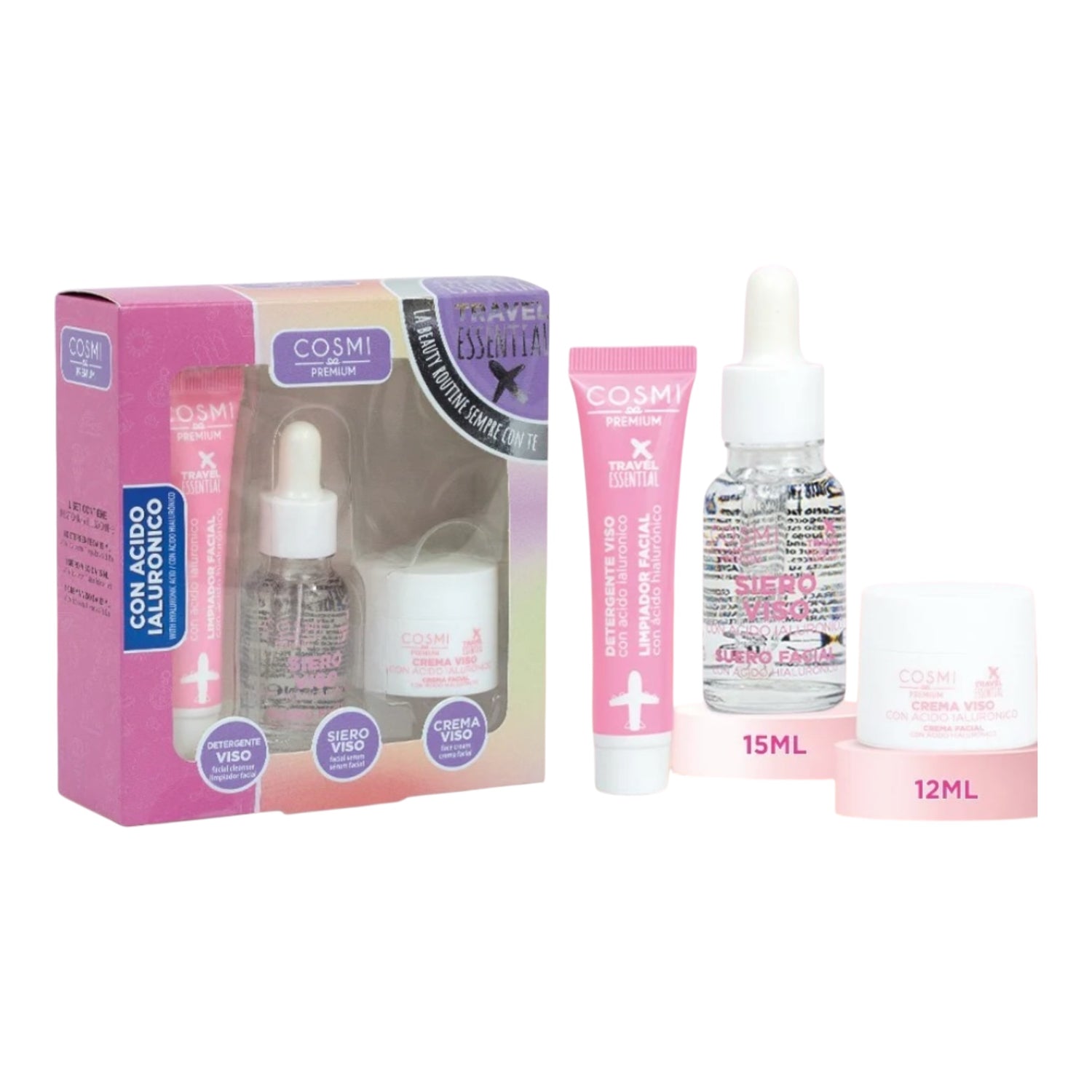 Coffret Travel Essential Acide Hyaluronique – Cosmi Premium – Mini Routine Visage