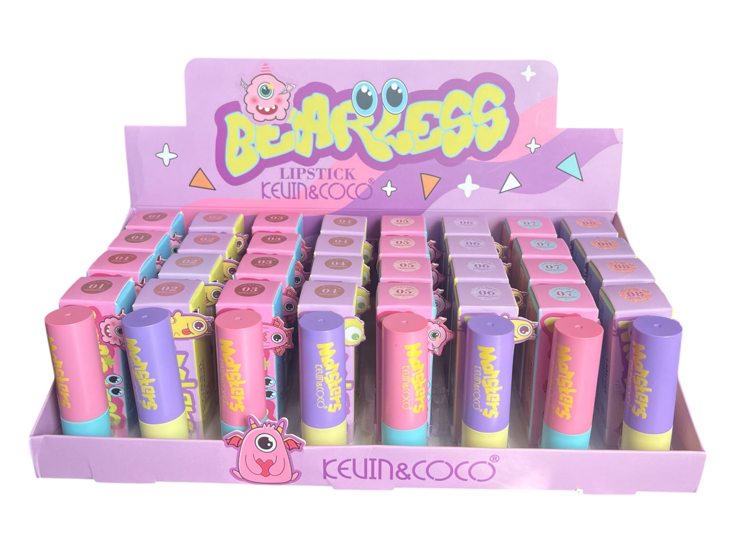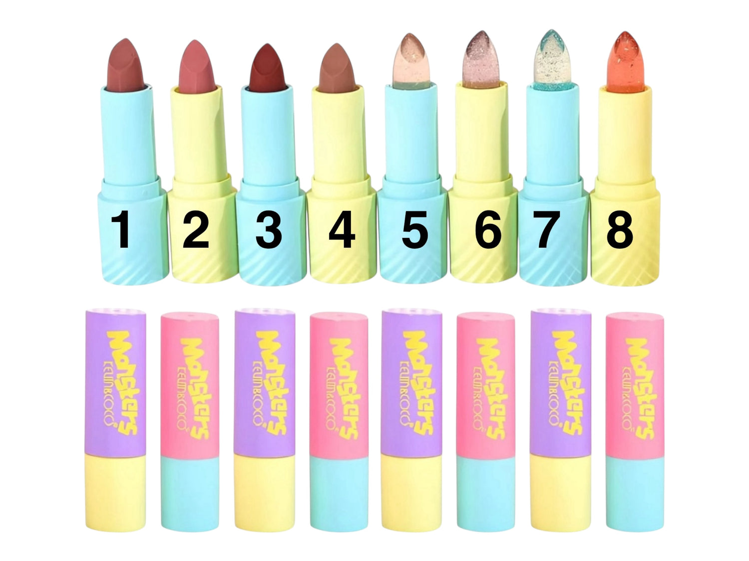 Le présentoir de rouge à lèvres se compose d’un élégant support en acrylique transparent, légèrement incliné pour mettre en valeur les huit teintes proposées. Chaque rouge à lèvres est disposé dans son étui individuel, aux couleurs pastel et joyeuses : rose dragée, lilas doux, vert menthe, jaune vanille… des tons qui évoquent la fraîcheur, la féminité et la douceur.